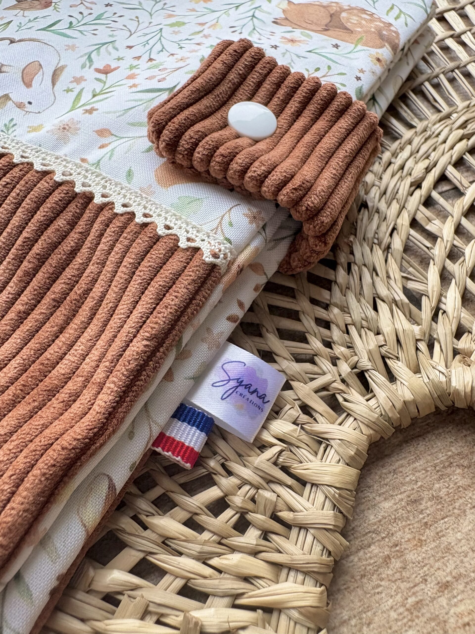 Je confectionne chaque modèle à la main, avec soin et passion. La personnalisation est brodée, ce qui assure une finition soignée et résistante. Cette attention aux détails rend chaque pièce à la fois élégante et durable, idéale pour suivre votre enfant tout au long de son enfance.