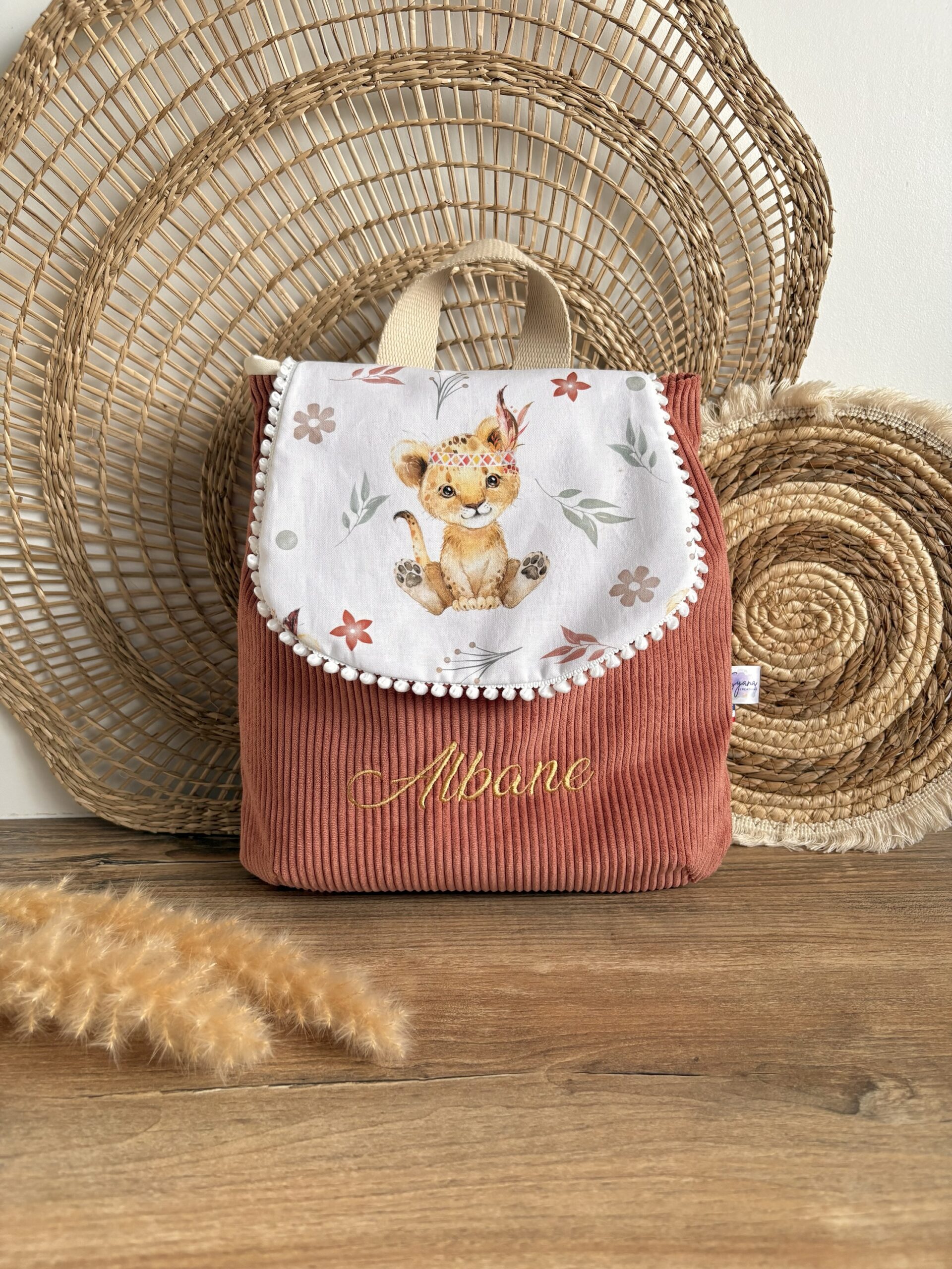 Sac à dos Enfant Safari 🦒🌿 Personnalisé en Velours côtelé