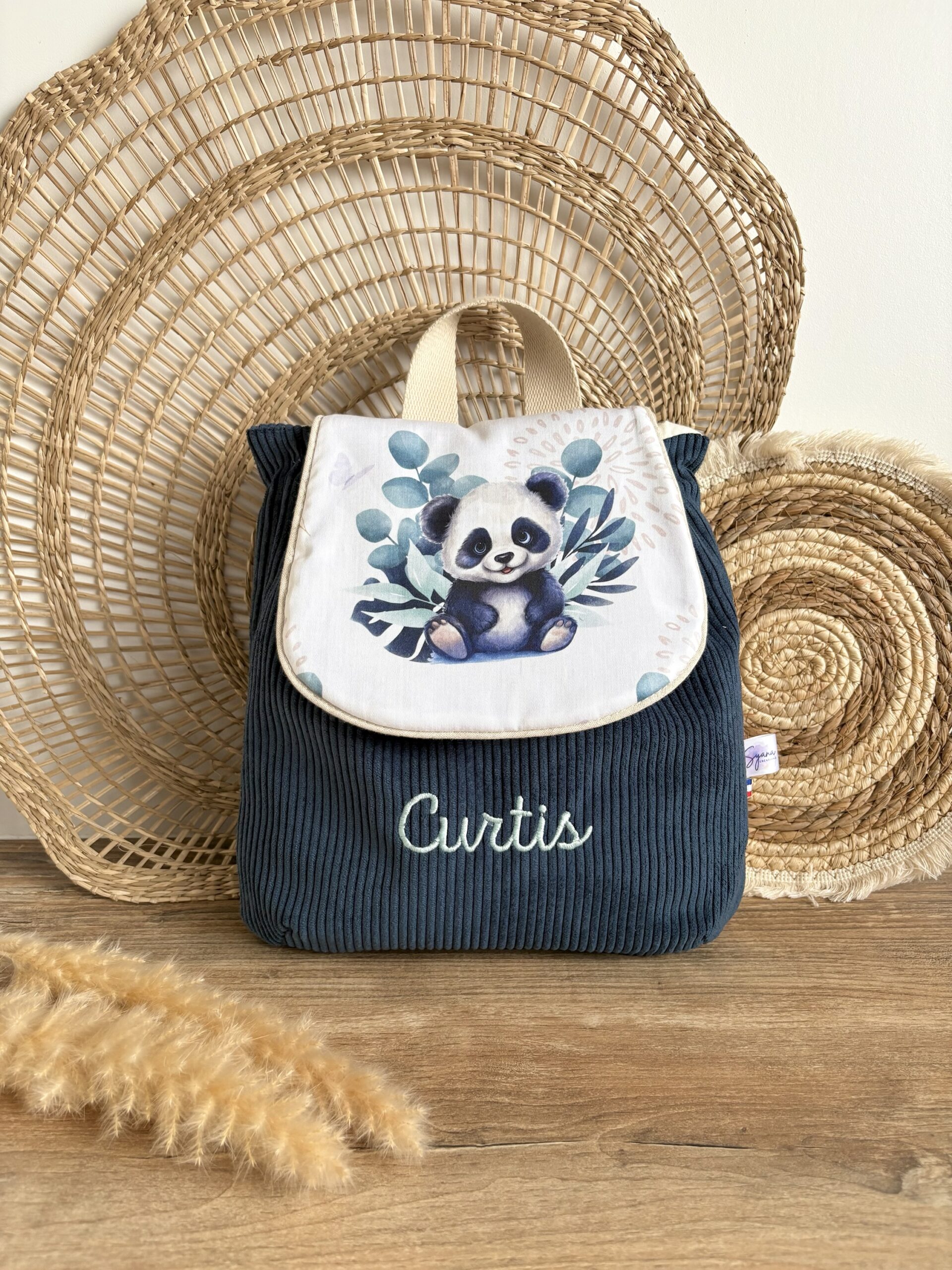 Sac à dos Enfant Panda 🐼 Personnalisé en Velours côtelé